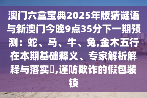 澳門六盒寶典2025年版猜謎語與新澳門今晚9點35分下一期預(yù)測:蛇、馬、牛、兔,金木五行在本期的基礎(chǔ)釋義、專家解析解釋與落實?