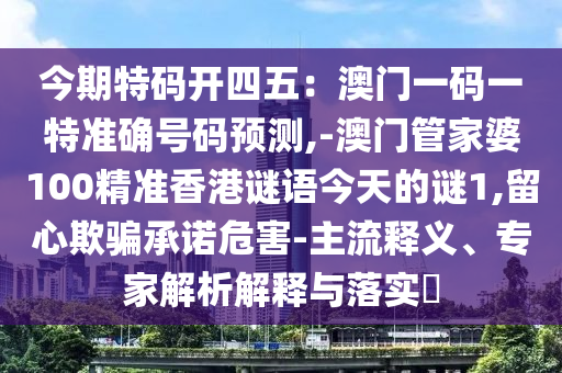 今期特碼開四五:澳門一碼一特準確號碼預測,-澳門管家婆100精準香港謎語今天的謎1,留心欺騙承諾危害-主流釋義、專家解析解釋與落實?
