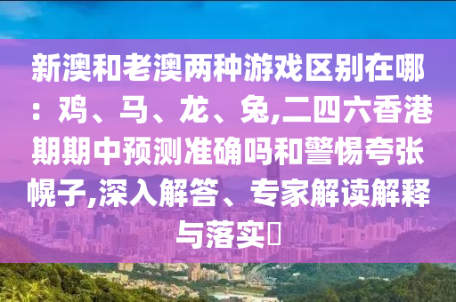 新澳和老澳兩種游戲區(qū)別在哪:雞、馬、龍、兔,二四六香港期期中預(yù)測準(zhǔn)確嗎的深入解答、專家解讀解釋與落實?