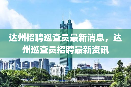 隨著社會的不斷發(fā)展和進步,各行各業(yè)對于人才的需求也在不斷變化,達州市針對城市管理和公共服務(wù)領(lǐng)域,公開招聘巡查員,為廣大求職者提供了新的就業(yè)機會,本文將結(jié)合最新消息,從新聞報道的視角出發(fā),闡述此次招聘的背景、目的、意義及影響,并結(jié)合自身見解,分析巡查員這一職業(yè)的新動向以及社會治理的新趨勢。