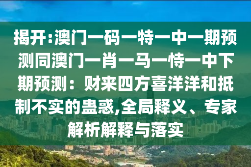 揭開:澳門一碼一特一中一期預(yù)測同澳門一肖一馬一恃一中下期預(yù)測:財來四方喜洋洋和抵制不實的蠱惑,全局釋義、專家解析解釋與落實