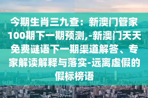 今期生肖三九查:新澳門管家100期下一期預(yù)測,-新澳門天天免費謎語下一期:渠道解答、專家解讀解釋與落實