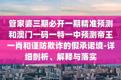 關(guān)于管家婆三期必開一期精準(zhǔn)預(yù)測和澳門一碼一特一中預(yù)測帝王一肖的詳細(xì)剖析、解釋與落實,以及謹(jǐn)防欺詐的假承諾現(xiàn)象