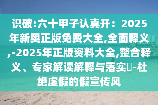 六十甲子認(rèn)真開——2025年新奧正版免費(fèi)大全”的全面釋義、專家解讀、解釋與落實(shí),警惕虛假宣傳