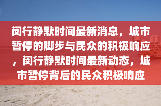 據(jù)最新消息報道,閔行區(qū)域于今日再次進入靜默時間,這是為了有效遏制新冠疫情的擴散,保障廣大市民的健康安全,本文將結合事實依據(jù),以新聞報道的視角對閔行靜默時間進行深入剖析,并融入個人的見解。