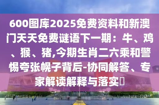 600圖庫2025免費(fèi)資料和新澳門天天免費(fèi)謎語下一期:牛、雞、猴、豬,今期生肖二六乘:協(xié)同解答、專家解讀解釋與落實?